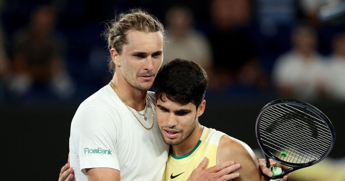 The sixth seed Alexander Zverev has defeated Carlos Alcaraz, the world’s second-ranked player, in an Australian Open quarterfinal, giving him a four-set stunner in a thrilling contest.