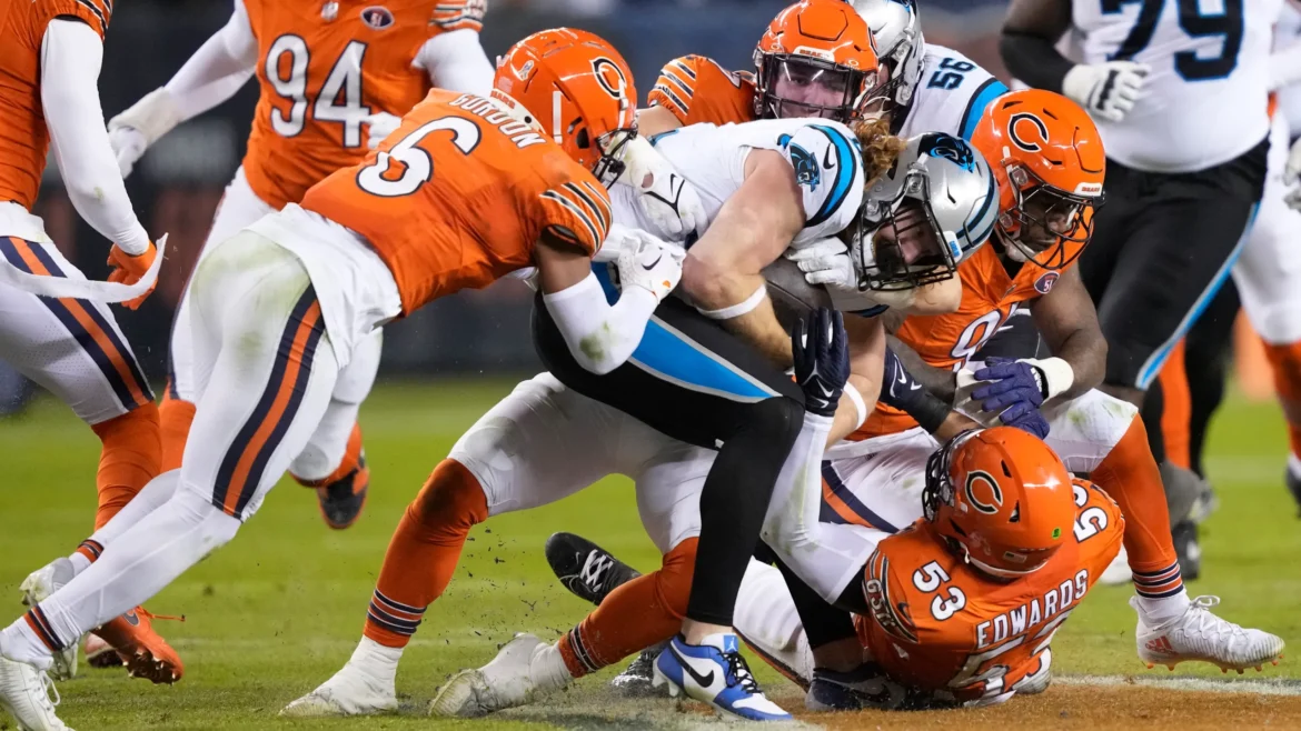 Chicago was up by three with 1:40 remaining in the game when Carolina’s Eddy Pineiro missed a 59-yard field goal, the ball landing well short of the goal post. The Bears sealed the win when Darnell Mooney caught an 8-yard pass on third-and-seven at the 48.