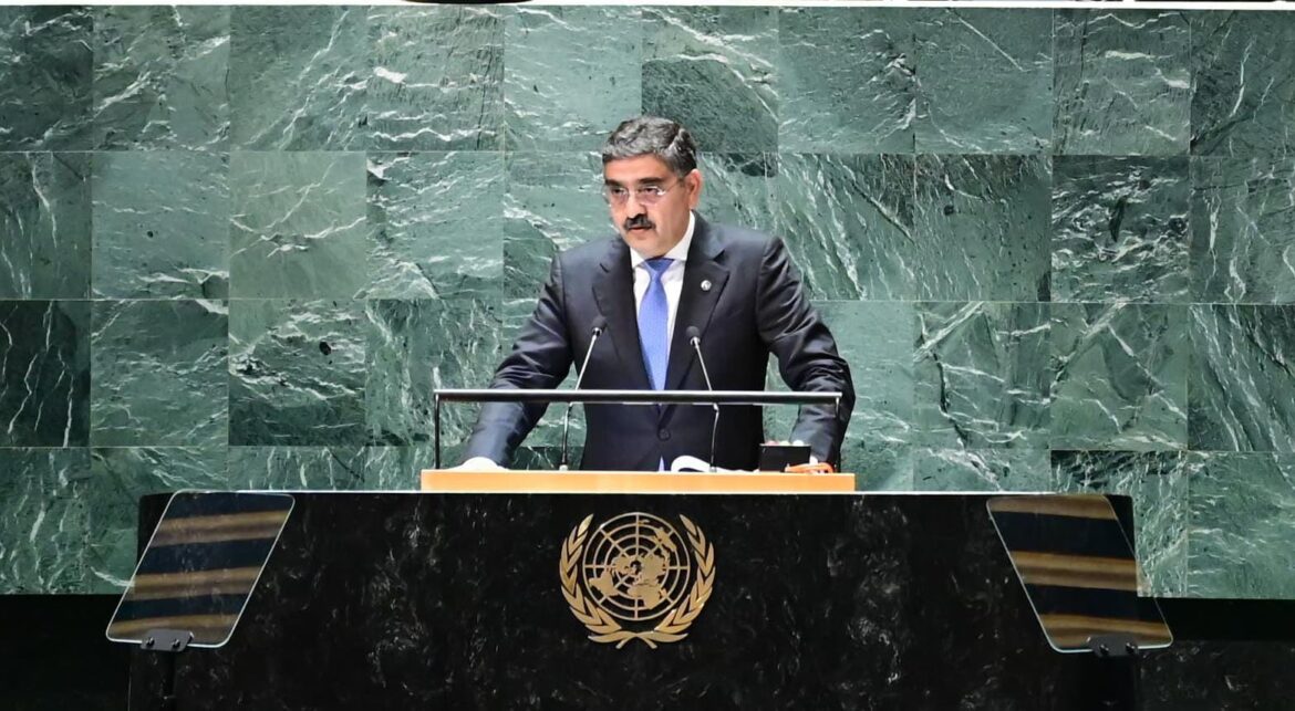 Caretaker Prime Minister Anwaar-ul-Haq Kakar adressing the 78th session of the United Nations General Assembly in New York.@anwaar_kakar pic.twitter.com/ERuIyynCfI