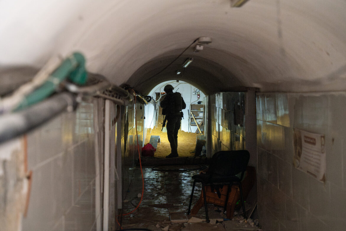 The military said the tunnel was 700 meters long, 18 meters deep — bifurcated at times — and it revealed side rooms. There was an office space, with steel safes that had been opened and emptied. There was a tiled toilet. One large chamber was packed with computer servers, another with industrial battery stacks.