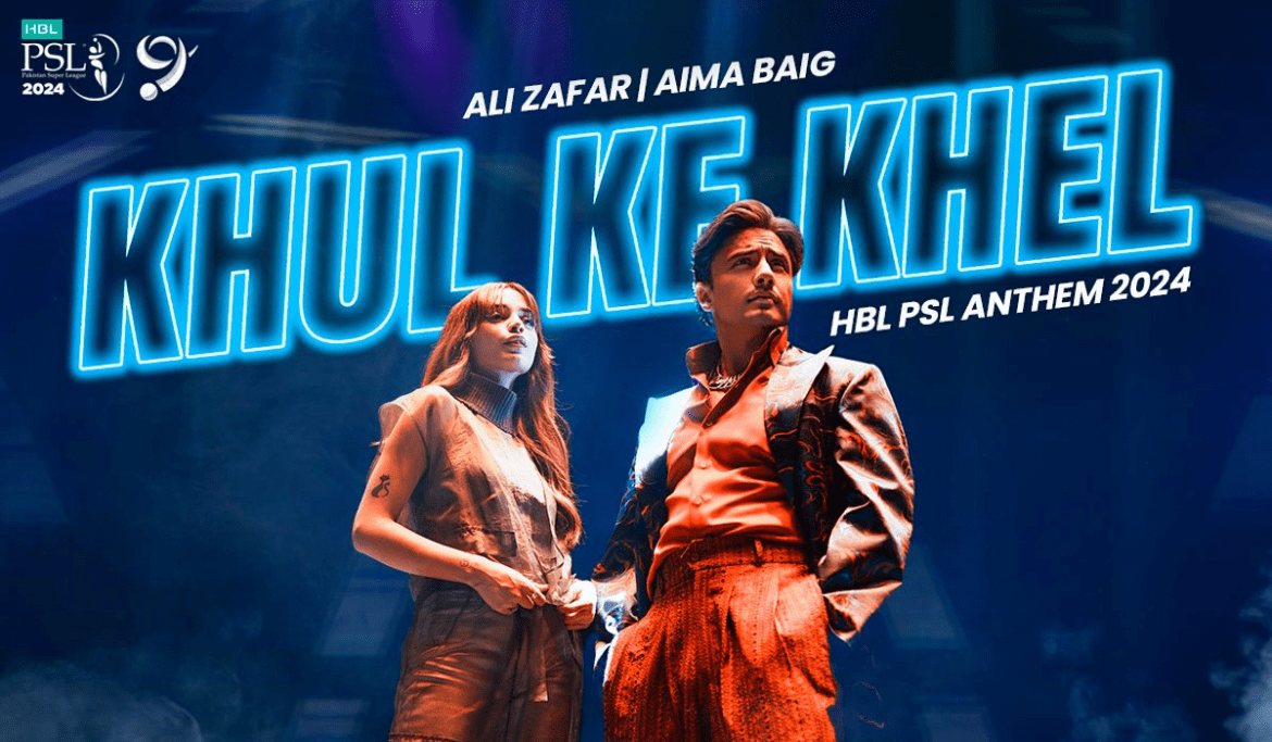The Pakistan Cricket Board (PCB) Wednesday released the official anthem titled “Khul Ke Khel” for the ninth season of the Pakistan Super League (PSL 9) starring Pakistani heartthrobs Ali Zafar and Aima Baig.