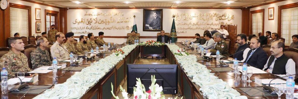 During the Apex Committee meeting, COAS was briefed about the overall security situation, including Law Enforcement Actions against electricity and gas theft, hoarding, and foreign currency smuggling.