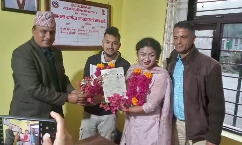 The marriage between 36-year-old Ram Bahadur (Maya) Gurung, who was born male but identifies as female, and Surendra Pandey, 26, who was born and identifies as male, was formally registered at the Dordi rural municipality office in the Lumjung district in west Nepal, an official said.