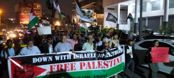 “Israel’s war on Gaza is not self-defense, but a well-thought-out plan for the genocide of the Palestinians,” said Leili Raza, leader of the left-wing Democratic Front.