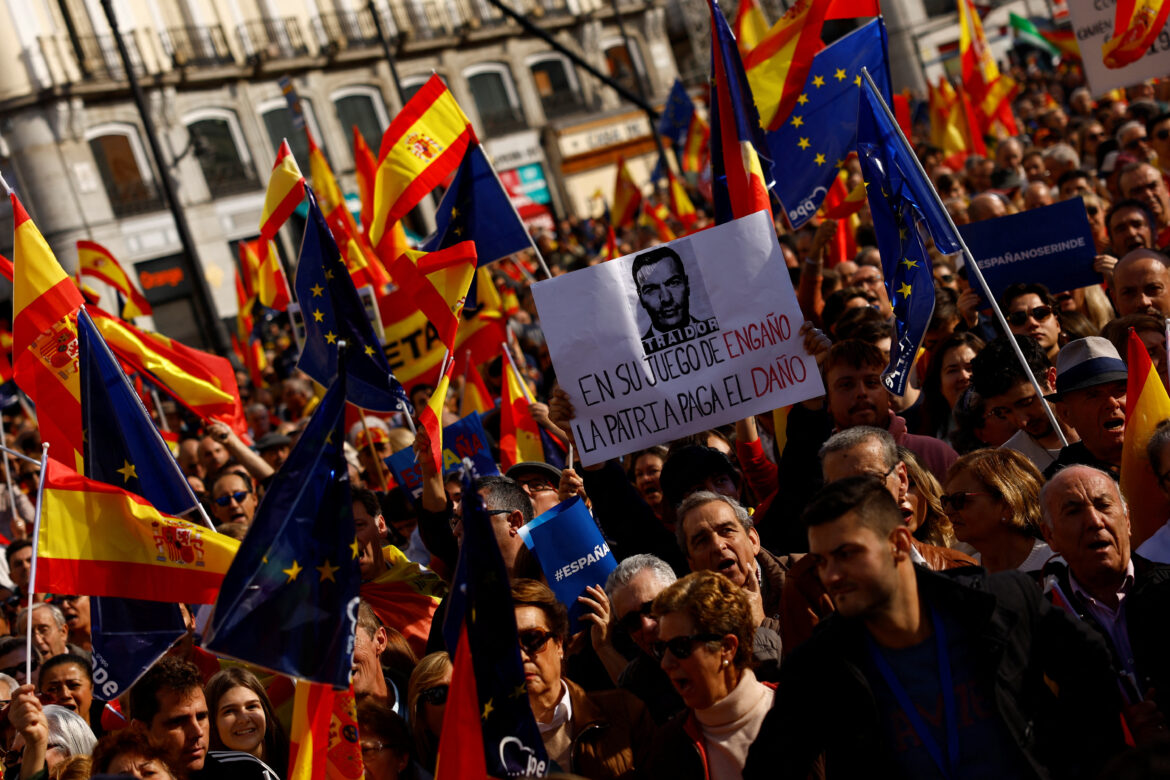 Tens of thousands of people protested across Spain on Sunday against acting prime minister Pedro Sanchez’s plans to grant amnesty to Catalan separatists in exchange for support for another term in office.